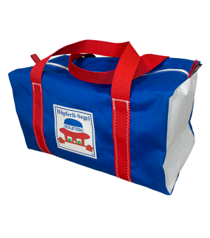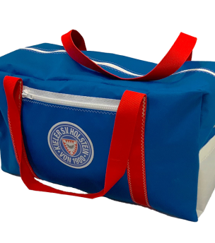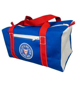 Through an exclusive cooperation between Hüpferli-Segel and Holstein Kiel, we present our small sports bag made of canvas in the Holstein Kiel design. The bag combines the club colors blue, white and red and carries the Holstein Kiel logo and an exclusively adapted design of our logo as a patch. Perfect for schoolchildren, sports enthusiasts and everyday use, it offers a combination of robustness and comfort.